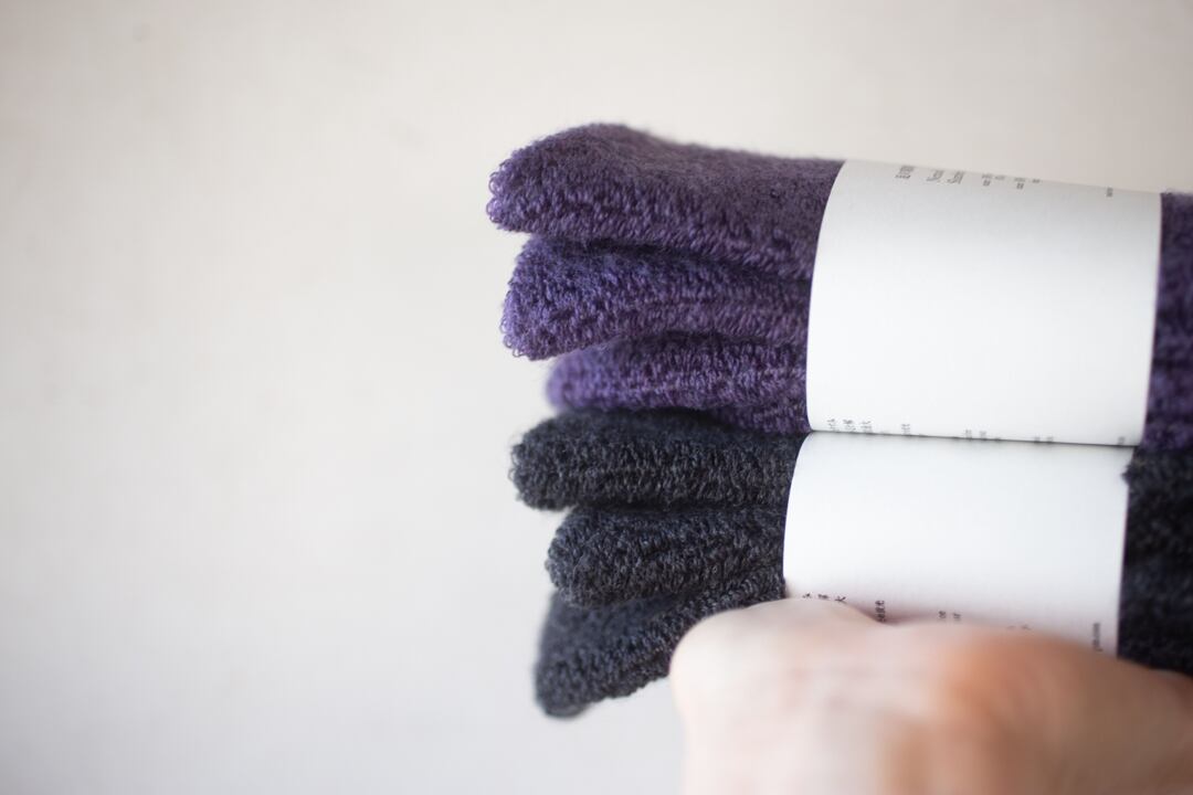 Glück und Guteの靴下の多くは内側はシルクが多いのですが、こちらはオーガニックコットンを使用しています。履いたときに感じるあたたかさややわらかさといった肌触りを重視したためとのこと。素材とむきあいながらその商品にぴったりのものを選ばれているということを使ってみると実感します。
