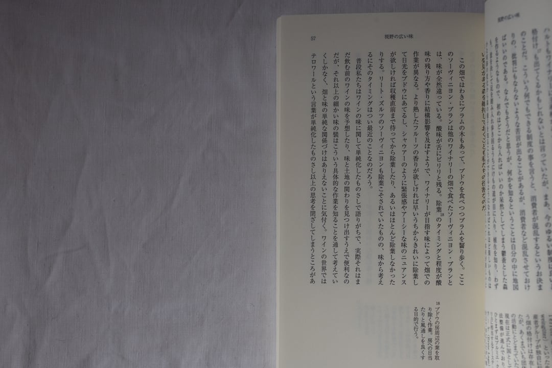 前置きとして書かれた「知らない土地の酒を飲む」に「海外で作られたワインを日本で飲む時、私たちはそれらのワインを本来あったはずの背景から切り取って飲んでいる。」とありました。日本で日本酒や焼酎を飲むように、ワインも「その国の食材や味覚との結びつき」で味が存在しています。