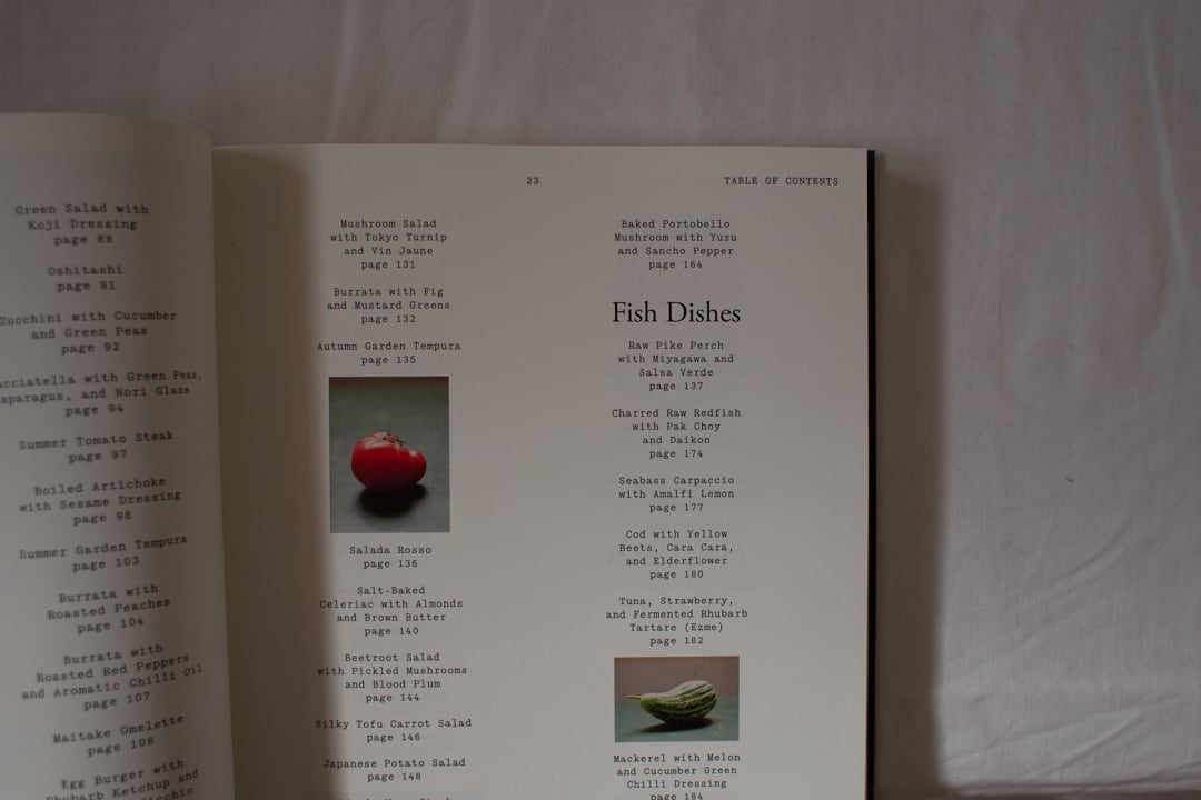 この「アポロ」のヘッドシェフはクラハシ・ユウタ(Yuta Kurahashi)が務め、デンマーク料理を基盤にしつつも日本やフランスやイタリアなどの料理の要素を加えつつ、華やかでありつつながめているだけでたのしい料理の数々が並びます。レシピは前菜からデザートまで104レシピが紹介されています。