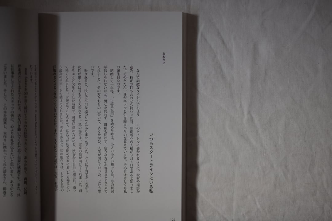 50年近く服を作り続けていても知らないことは広がるとのこと。「いつもスタートラインにいる」という気持ちを持って本書のタイトルがつきました。