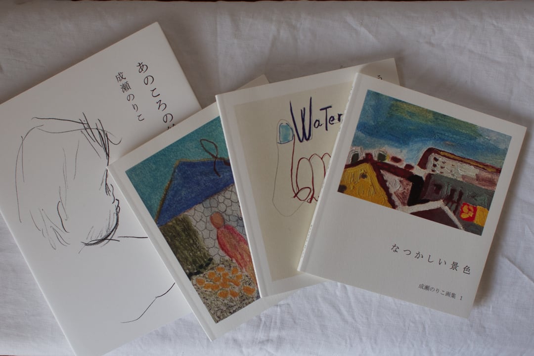 こちらは、3冊同時に出版された『成瀬のりこ画集』の第3集『その日その日』。人とのおしゃべりが得意ではないというのりこさんは、頭に浮かんだことはなんでも紙やノートに書く癖があるそうです。