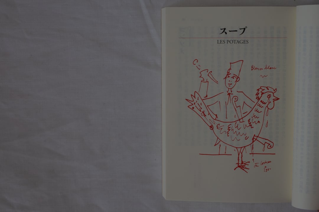 その彼が、友人である詩人のジャン・コクトーのためにつくった料理のレシピ集です。レシピと言っても文章でその素材や料理について紹介され、おいしさをつくる調理法の詳細もかかれているといった方が的確でしょうか。