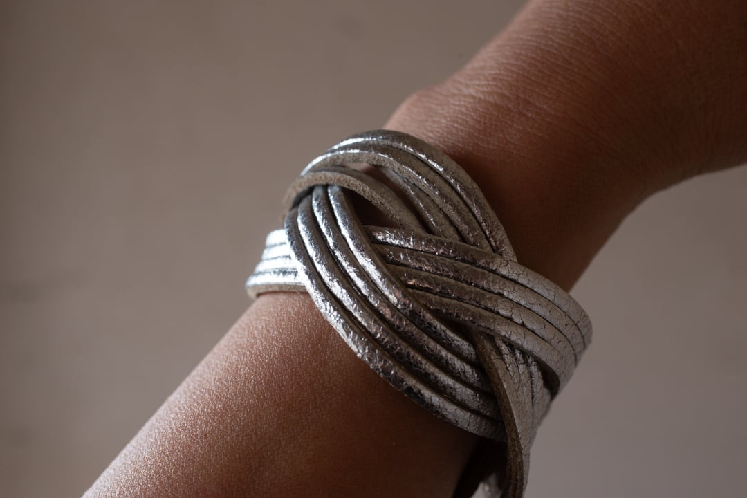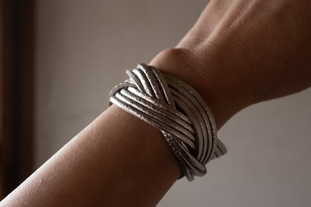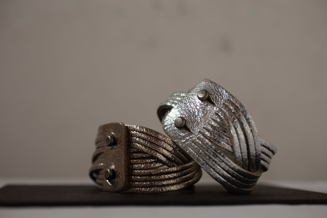 ドイツの靴ブランドtrippenによる革のブレスレット。trippenの靴と同様に簡素なデザインながらも力強さや存在感が感じられます。植物をつかって革をなめしているので、使い込むほど色も質感もなじんでいきます。