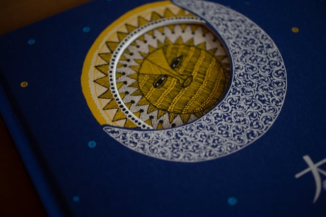 「10人のインドの先住民族の代表的なアーティストがそれぞれの民族に伝わる物語をもとに太陽と月を描いた画期的な絵本。見開きごとに太陽と月が、独特の民俗画のスタイルで丁寧にのびやかに描かれている。私たちの日々の暮らしの中で当たり前のように存在している「太陽」と「月」。昔から人々は、そこに神の存在や象徴的な意味を見出してきた。