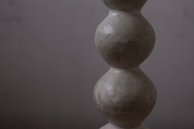 彫刻家・坂本紬野子さんの作品です。光のあたり方により雰囲気がかわります。同じような形であってもその時々で土の色、釉薬のかかり方、大きさなど様々な要因で1点ずつ雰囲気が異なります。