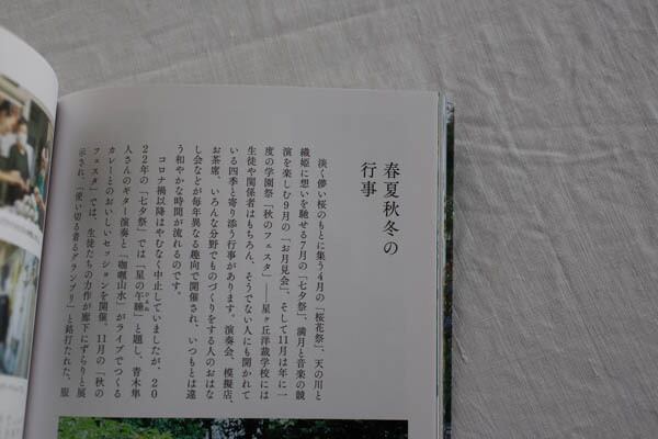 みどりに囲まれ、四季と寄り添う学校のこれまでのこと、洋服づくりのこと、SEWING GALLERYのことなどたくさんの写真と文章とで紹介されています。