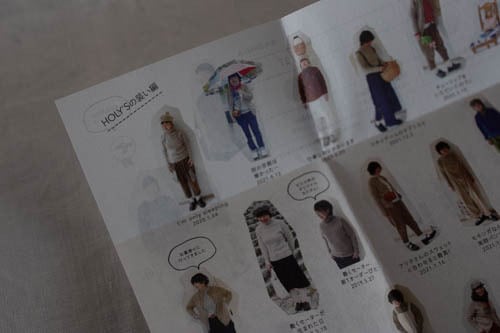 フィッティング風景や往復書簡、HOLY'Sの着回し術!などページをめくるごとにいろいろな企画が展開するたのしい冊子です。帯もたのしい造りになっているので、広げておたのしみください。
